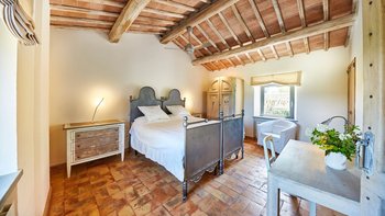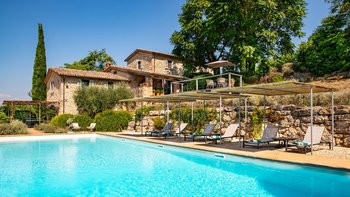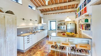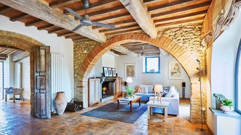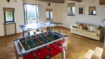 Für einen wirklich erholsamen Aufenthalt auf dem Land wäre eine geräumigere, elegante und gepflegte Villa schwer zu finden. Casale del Sole ist ein Ort für alle Jahreszeiten und verfügt über weitläufige Gärten, Terrassen im Freien und einen Pool, in dem man wirklich schwimmen kann. Für die kühleren Monate gibt es bequeme Sofas und einen großen offenen Kamin im Wohnzimmer; und Tischtennis und Tischfußball im Spielzimmer. Dessen altes Steinhaus, ein eher erwachsenes Refugium, wurde mit Flair und Stil restauriert und unter den Holzbalkendecken eine sehr moderne Inneneinrichtung geschaffen.