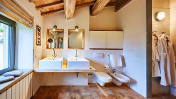 Die stilvollen, übersichtlichen Zimmer mit viel Holz und frischen weißen Möbeln verfügen über ein offenes Wohn-/Esszimmer, das durch riesige Steinbögen unterteilt ist, und drei rustikal-chic Schlafzimmer, 2 mit eigenem Bad und einem separaten Duschbad. Eines der Schlafzimmer kann als Doppelbett oder zwei Einzelbetten eingerichtet werden. Von verschiedenen Aussichtspunkten auf dem terrassenförmig angelegten Grundstück bietet sich eine herrliche Aussicht, nicht zuletzt vom 16-Meter-Pool, der von Kräuterbändern und ebenen Rasenflächen umsäumt ist. Mit Reitställen und Kochschule in der Umgebung, und einem Restaurant in 2 km Entfernung, mit einer Reihe weiterer Annehmlichkeiten in Massa Martana ist sehr leicht zu erreichen. Deren Villa ist 12 km vom schönen Todi und 70 km von Orvieto und Assisi und. Mit so vielen interessanten Städten, die leicht mit dem Auto erreichbar sind, ist dies ein hervorragender Ort für Ausflüge.