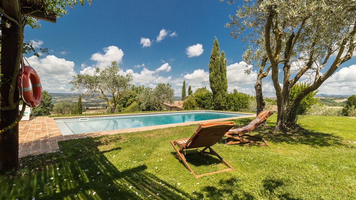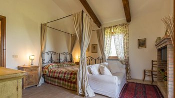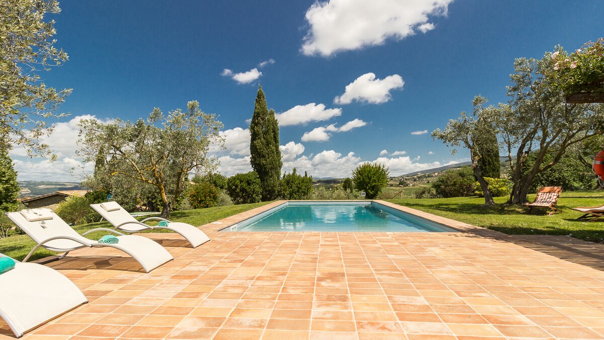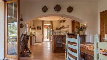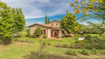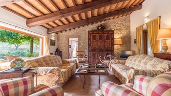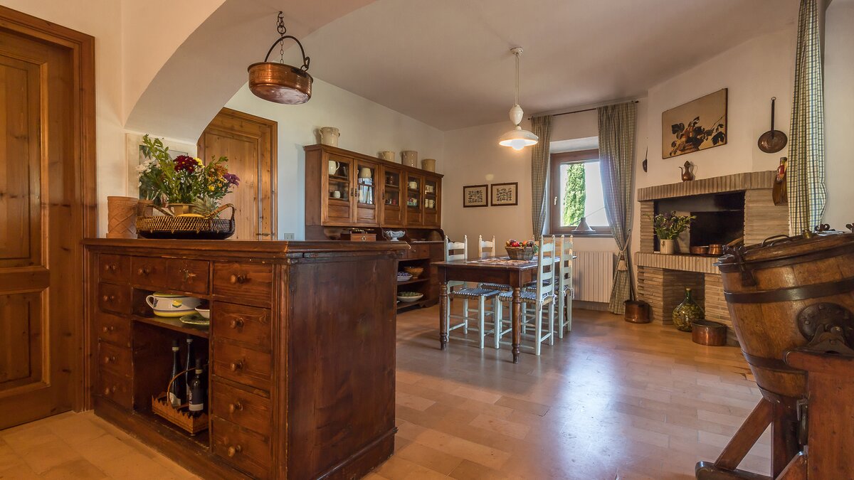 In der unberührten Landschaft von Orvieto gelegen, mit Blick auf einen Flickenteppich aus Hügeln, Feldern und Wäldern, wurde diese charmante Familienvilla restauriert, um ihre ländliche Lage widerzuspiegeln. Dessen Haus ist mit Holzschränken und warmen Landfarben eingerichtet und fühlt sich wie ein geliebtes Zuhause an. Dessen Küche ist ein gemütlicher Ort mit einem großen Frühstückstisch, einem charmanten Esszimmer und dem gemütlichen Wohnzimmer mit einem großen Holzkamin. Im Haupthaus befinden sich fünf attraktive Schlafzimmer und zwei weitere im Nebenhaus, jedes mit eigenem Bad oder Dusche.