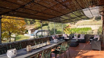Bitte beachten Sie, dass es jetzt eine Pergola gibt, die Schatten über der Terrasse bietet.