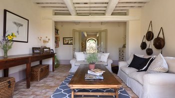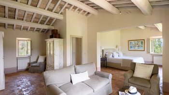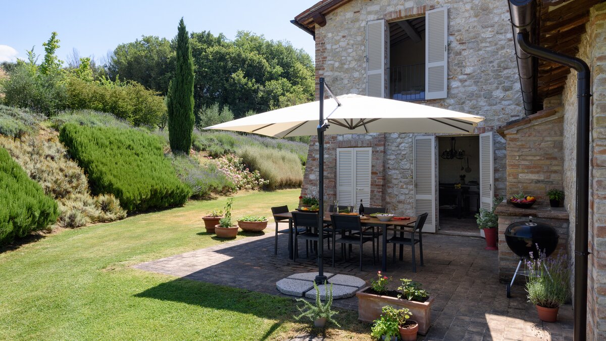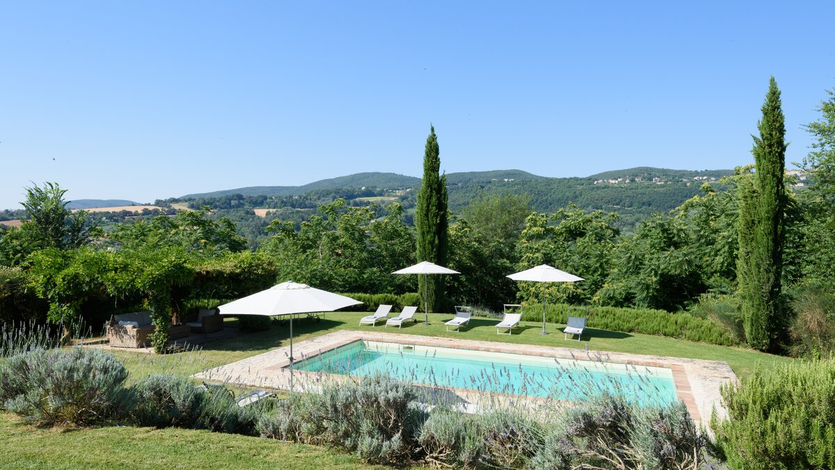 Ripa Bianca liegt auf einem sonnigen Hügel im Süden Umbriens und ist ein herrlich geräumiges Haus mit einer entspannten Atmosphäre wie zu Hause. Bei Renovierungsarbeiten wurden traditionelle Materialien mit modernem Komfort kombiniert und Antiquitäten und Kunstwerke mit einer beruhigenden Farbpalette ergänzt. Im Erdgeschoss befindet sich ein elegantes, aber ungezwungenes Wohnzimmer mit großen Sofas und Kissenbeuteln, freiliegenden Steinwänden und Dachsparren. Es öffnet sich in ein Esszimmer im Landhausstil und eine gut ausgestattete Küche, in der viel Arbeitsraum mit modernen Geräten kombiniert wird. Es gibt zwei Schlafzimmer auf dieser Etage und drei im Obergeschoss, darunter eine bezaubernde Master-Suite mit Kingsize-Bett. Alle Schlafzimmer haben ein eigenes Bad (alle mit Dusche und zwei mit Badewanne) und drei können mit Super-Kingsize- oder zwei Einzelbetten ausgestattet werden, eines als Einzelbetten und das Hauptschlafzimmer als Super-Kingsize-Bett. Während eine obere Loggia mit weichen Sitzgelegenheiten das Gute aus dem herrlichen Panoramablick macht, führen im Erdgeschoss mehrere Doppeltüren zu einer großen Rasenfläche und einer schattigen Pergola und einer zweiten Pergola mit bequemen Stühlen und einem Sofa, die neben dem privaten Privater Pool An Pool gibt es auch eine Pergola mit einer Bar für faule Sommercocktails und einen Esstisch, der sich perfekt für ein Mittagessen im Freien eignet. Die Villa ist 3 km von ein paar sehr guten lokalen Restaurants und 5 km von den Geschäften in Narni Scalo, mit Todi, Orvieto, Spoleto und Perugia alle für einen Tagesausflug leicht zu erreichen. Es gibt auch einen Bahnhof in Narni Scalo und daher ist Rom für einen Tagesausflug oder einen Abend leicht erreichbar.