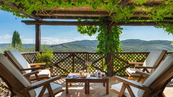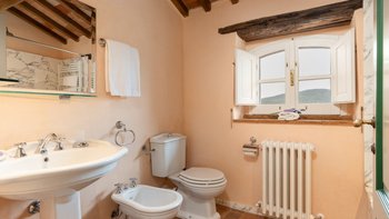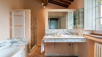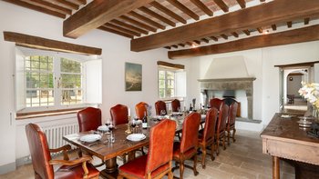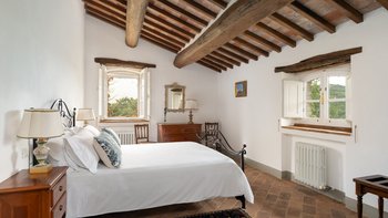 Dieses wunderschön umgebaute Bauernhaus mit einem 360-Grad-Blick auf den Apennin liegt an der Grenze zwischen Umbrien und der Toskana, in einer Landschaft, die sich seit Jahrhunderten nicht verändert hat. Mit viel Platz im Haus und auf dem Grundstück ist es eine ausgezeichnete Familienvilla, mit einer flexiblen Mischung aus Doppel- und Zweibettzimmern und einer Reihe von Einrichtungen wie ein Privater Pool und ein Tennisplatz, ein Arbeitszimmer mit WLAN und ein Steinway-Flügel im Wohnzimmer. Elegant und verziert unter den Holzbalkendecken ist die Villa im eleganten italienischen Stil eingerichtet und bietet sehr hohe Standards. Jedes der sechs Schlafzimmer befindet sich im Haupthaus, ebenso die Küche, das Wohn- und Esszimmer und ein Fernsehraum/Bibliothek.