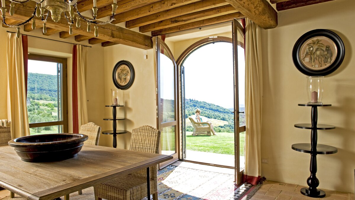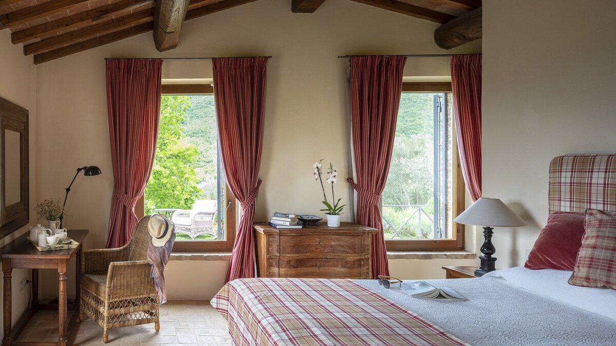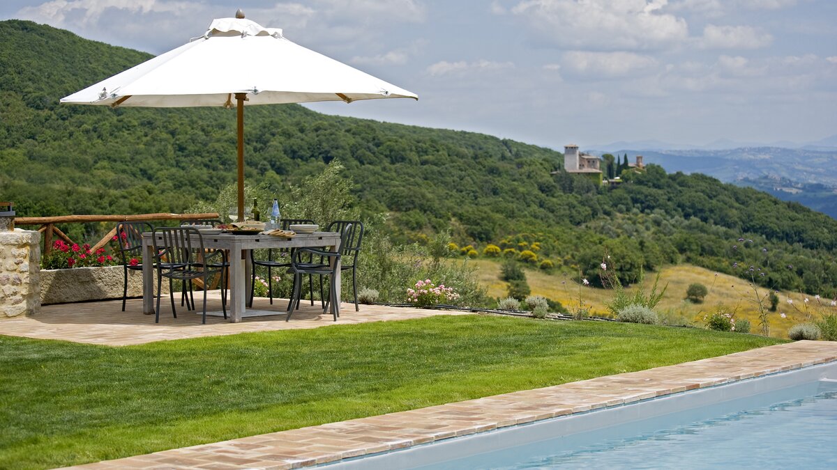 Charakter und zeitgemäßer Komfort vereinen sich in dieser Familienvilla in Umbrien mit stilvollem Flair. Dessen von weitläufigen Rasenflächen umgebene Haus wurde zu einem hohen Standard renoviert, wobei der Platz unter den Holzbalkendecken maximiert wird und jedem der sehr individuellen Zimmer eine aufgeräumte Eleganz verleiht. Im Erdgeschoss befindet sich das Wohnzimmer mit großen Sofas in kühlem Cremeweiß, französische Fenstertüren führen vom Esszimmer auf eine hübsch möblierte Terrasse, und das erste der drei Schlafzimmer kann als Doppelbett oder zwei Einzelbetten eingerichtet werden. Ein Etagenschlafzimmer im ersten Stock bietet Platz für bis zu vier Kinder, und das charmante Zimmer an der Spitze des Turms verfügt über eine private Dachterrasse. Draußen, neben dem Infinity-Pool, bietet eine Terrasse einen atemberaubenden Blick auf die kleinen Seen und Flüsse des Murlo Estate, und die Hügellage ist auch ein Traum für Golfer. Nur 500 Meter entfernt befindet sich Antognolla’s 18-Loch-Championship Course, der von Robert Trent Jones Jr. entworfen wurde und den Gästen der Villa Bramasole Vorzugspreise auf Greenfees und im Clubhaus-Restaurant bietet. Geschäfte in Pierantonio und Umbertide sind 5 km entfernt.