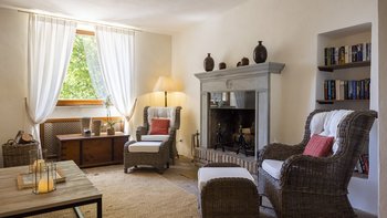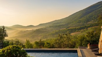Mit Blick auf ein fantastisches Panorama der bewaldeten Hügel und kaum einem weiteren Haus in Sichtweite verströmt diese Luxusvilla einen Hauch ruhiger Abgeschiedenheit. Weitläufige Rasenflächen umgeben das Haus, das mit Wacholderzypressen und Buschbänken strukturiert ist und zu einem einladenden Swimmingpool und einer gepflasterten Sonnenterrasse führt. Im Haus gibt es eine charmante Frühstücksküche mit Zugang zu einer Terrasse im Freien, hell karierte Stoffe verleihen einem sehr hübschen Wohn-/Esszimmer eine einladende Note und eine ehemalige Kapelle wurde in ein zweites Wohnzimmer umgewandelt.Villa Murlo verfügt über ein Zweibett- und drei Doppelschlafzimmer, jedes mit eigenem Bad oder Duschbad und jedes individuell und stilvoll eingerichtet, mit weißen Wänden und warm getöntem Holz oder kunstvollen Schmiedeeisenmöbeln. Für einen wirklich entspannten Aufenthalt kann hier ein Kochservice gebucht werden, und die Gäste erhalten Vorzugspreise für Greenfees und im Clubhaus-Restaurant des 2 km entfernten Antognolla Golf. Geschäfte in Pierantonio sind 9 km von der Villa entfernt, mit dem lebhafteren Umbertide etwas weiter.