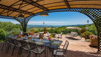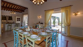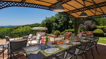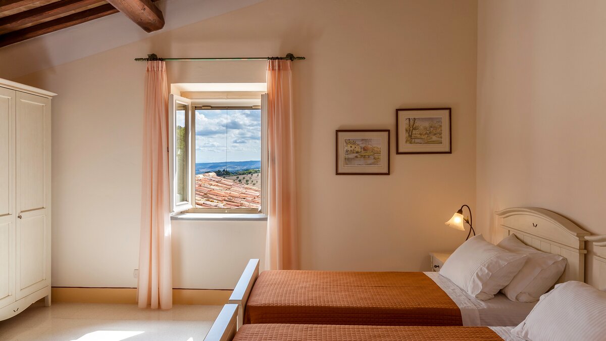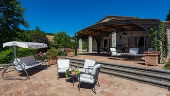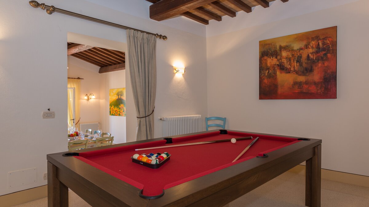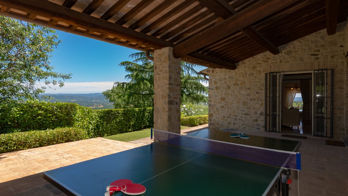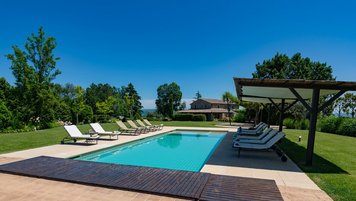 Im Herzen der Landschaft Umbriens gelegen, wurde die Villa Zafferano wunderschön in eine sehr geräumige Luxusvilla umgewandelt, für diejenigen, die eine geräumige und sehr private Villa von sehr hohem Standard suchen. Umgeben von wunderschönen, gepflegten Gärten mit atemberaubender Aussicht, gibt es sehr weitläufige Außenbereiche in der Villa, darunter eine große Rasenfläche mit Fußballtor hinter dem Pool; ein Grillplatz, ein Essbereich im Freien und reichlich Tische und Sitzgelegenheiten, um sich zu entspannen und die weitreichende Aussicht zu genießen und, die sich über die Hügel in Richtung der Stadt Orvieto erstreckt, die in der Ferne deutlich sichtbar ist. Denen geräumigen Innenräume sind sorgfältig in einem modernen Stil mit hellen Farben und schön ausgestatteten Bädern eingerichtet. Im Erdgeschoss befinden sich eine große Küche, ein Ess- und Wohnbereich und ein Fernsehraum und ein Raum mit Billardtisch. Es gibt einen direkten Zugang zur Terrasse, der auf den Esstisch im Freien und die Terrassen mit weichen Sitzgelegenheiten führt. Deren untere Ebene der Villa vervollständigen zwei Doppelschlafzimmer mit Dusche en suite und Zugang zu den Gärten. Deren erste Etage besteht aus vier großen Schlafzimmern: einem geräumigen Schlafzimmer mit Doppelbett en suite und einem geräumigen Zweibettschlafzimmer mit eigenem Bad und separater Dusche auf der einen Seite der Villa und einem weiteren geräumigen Doppelzimmer mit eigenem Bad und separater Dusche auf der anderen Seite der Villa, was dies zu einer idealen Wahl für Familien macht, die zusammen reisen. Kochservice ist auf Anfrage erhältlich und Villa Zafferano ist eine kurze Fahrt von Fabro und Allerona und 25 Minuten von der schönen Stadt Orvieto entfernt.