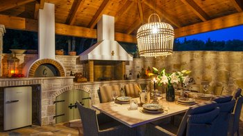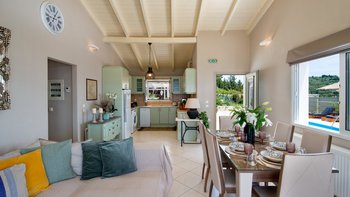 Die Gäste werden von einem schönen Swimmingpool begrüßt, der von einer weitläufigen Terrasse umgeben ist und einen Panoramablick auf das Ionische Meer bietet. Deren Außenbereich ist ein echtes Highlight, mit luxuriösen Sonnenliegen, Loungebereichen und zwei überdachten Essbereichen, die sich ideal für Mahlzeiten im Freien eignen. Deren Außenküche mit Pizzaofen lädt zu kulinarischen Abenteuern unter dem griechischen Himmel ein. Eine Tischtennisplatte sorgt für Unterhaltung im Freien, während die erstklassige Lage der Villa einen einfachen Zugang zu den nahe gelegenen Sehenswürdigkeiten ermöglicht. Der Strand Avlaki ist nur 1,2 km entfernt und die charmante Stadt Gaios mit ihren zahlreichen Geschäften, Restaurants und Annehmlichkeiten nur 1,8 km von diesem idyllischen Rückzugsort entfernt. Etwa die gleiche Entfernung befindet sich der Strand Calisco, 1,6 km von der Villa entfernt, während der Strand Plakes 2,8 km entfernt ist. Für weitere lokale Optionen gibt es einen Supermarkt nur 500 m von der Villa entfernt.