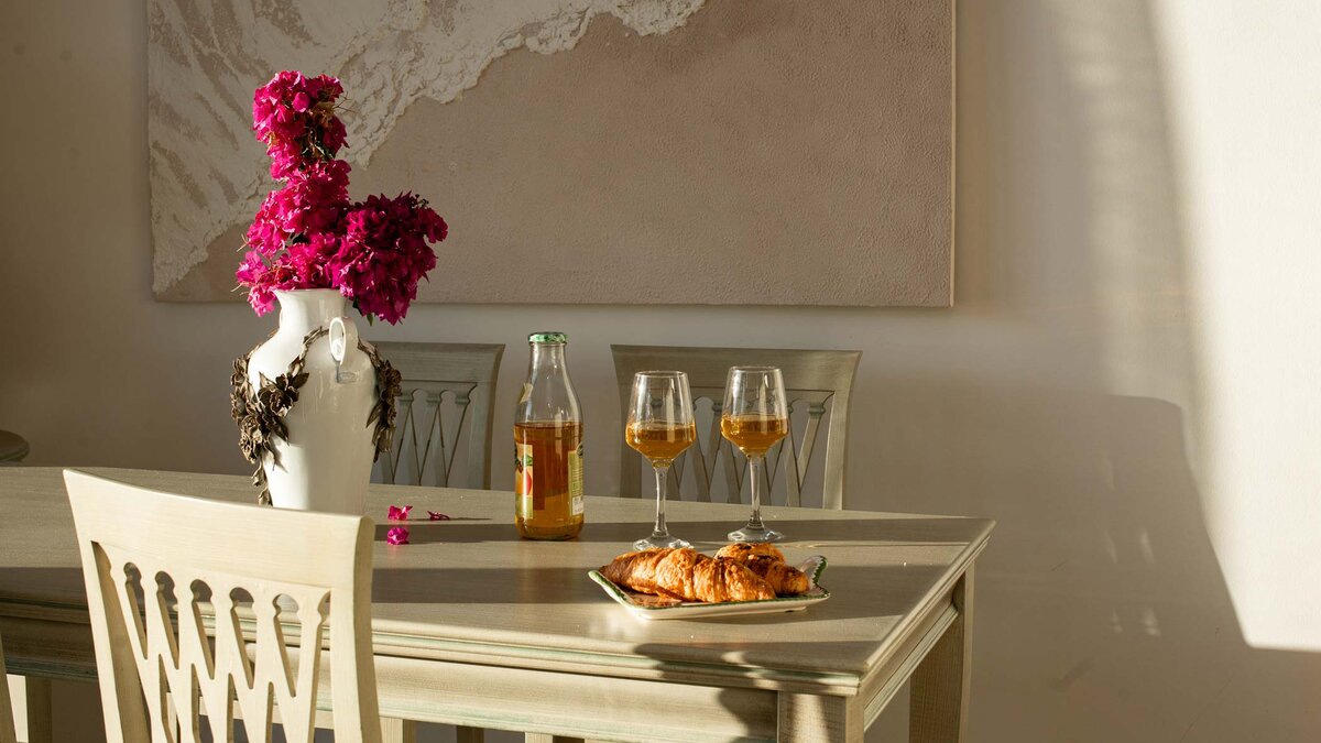 Die Innenräume der Villa Theos sind ein Zeugnis des raffinierten Küstenstils. Deren offene Wohnbereich ist mit beruhigenden Pastelltönen, hellen Holzarbeiten in getünchten Farben und kühlen grauen Steinböden geschmückt. Lebendige Stoffe sorgen für einen auffälligen Kontrast und schaffen eine harmonische und einladende Atmosphäre. Deren voll ausgestattete Küche öffnet sich auf eine Seitenterrasse mit einem Grillplatz, auf dem Sie unter dem Sternenhimmel im Freien speisen können. Deren Schlafzimmer und Wohnräume sind außerdem mit großen Fenstern ausgestattet, die eine faszinierende Aussicht einrahmen und dafür sorgen, dass die Schönheit der Umgebung nie weit entfernt ist.