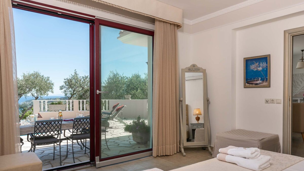 Das Äußere der Villa Theos ist ebenso bezaubernd, mit einem privaten Pool, großzügigen Terrassen und wunderschön angelegten Gärten. Dessen Schlafzimmer im ersten Stock verfügt über zwei separate Terrassen und ein romantisches Himmelbett, das einen zusätzlichen Hauch von Privatsphäre bietet. Von jedem Aussichtspunkt aus können die Gäste das sich ständig verändernde Bild von Himmel und Meer genießen, das sich bis zum Horizont erstreckt. Nur 1,5 Kilometer vom nächsten Restaurant und dem Dorf Gaios und nur einen Kilometer vom nächsten Strand und Hafen entfernt, ist die Villa Theos der perfekte Ausgangspunkt, um den Charme der Insel zu erkunden und gleichzeitig einen ruhigen Rückzugsort für jeden Abend zu bieten.