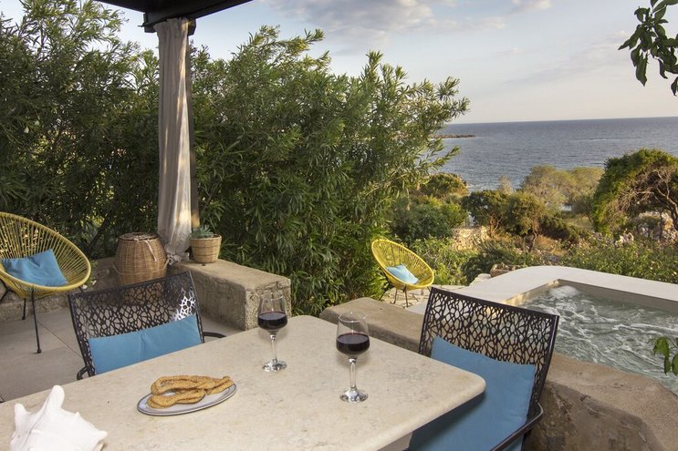 Zwillingshäuser in einem riesigen Olivenhain mit direktem Zugang zum Strand, die schönen Villen von Liodentra, im Herzen der Halbinsel Mani auf dem Peloponnes, sind ein wahrer Genuss im „echten Griechenland“.
