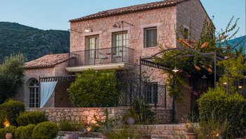 Mit seiner Geschichte, die bis in die Zeit des Homerismus zurückreicht, der Lage zwischen dem Meer und den Hängen des Taygetos, ideal für die Erkundung der Küste und des Landes, und seinen traditionellen Tavernen am Ufer, ist Kardamyli ein Idyll für Griechophile. Zehn Minuten zu Fuß vom Dorfzentrum und nur einen Spaziergang durch das Gelände vom Strand von Ritsa entfernt, verkörpert Liodentra den zeitlosen Charme der Gegend und bietet gleichzeitig sehr modernen Komfort. Denen dazugehörigen Hauptvillen, Ena und Thio („Eins“ und undZwei“), sind individuell eingerichtet und verbinden auf elegante Weise bequeme Sofas und ein kühles und weiches Dekor mit Charakter und Farbe aus Perserteppichen und Mitgifttruhen.