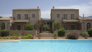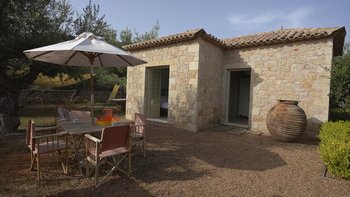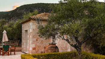 Zwillingshäuser in einem riesigen Olivenhain mit direktem Zugang zum Strand, die schönen Villen von Liodentra, im Herzen der Halbinsel Mani auf dem Peloponnes, sind ein wahrer Genuss im „echten Griechenland“.