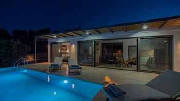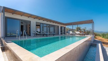 Diese eleganten griechischen Villen liegen nur 2,3 km vom hübschen Petalidi entfernt und verfügen über ein modernes, blendend-weißes Äußeres. Gehen Sie nach innen, um einen hellen, luftigen offenen Grundriss- Bereich zu entdecken, der sowohl den Wohn-/Essbereich und auch den Küchenbereich umfasst. Das Zimmer ist in ruhigen Blau- und Weißtönen gehalten und führt durch breite Doppeltüren auf einen atemberaubenden Außenbereich. Auf der Terrasse finden Sie viele Orte zum Entspannen in der Sonne sowie einen atemberaubenden Infinity-Pool mit Blick auf die neblige Silhouette der Hügel und den malerischen Blick auf das Meer.