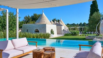 Das Dimora Pomona ist eine wunderschöne Trullo-Villa in der Nähe von Cisternino und Locorotondo mit außergewöhnlichen Wohnbereichen im Freien und modernem Dekor.