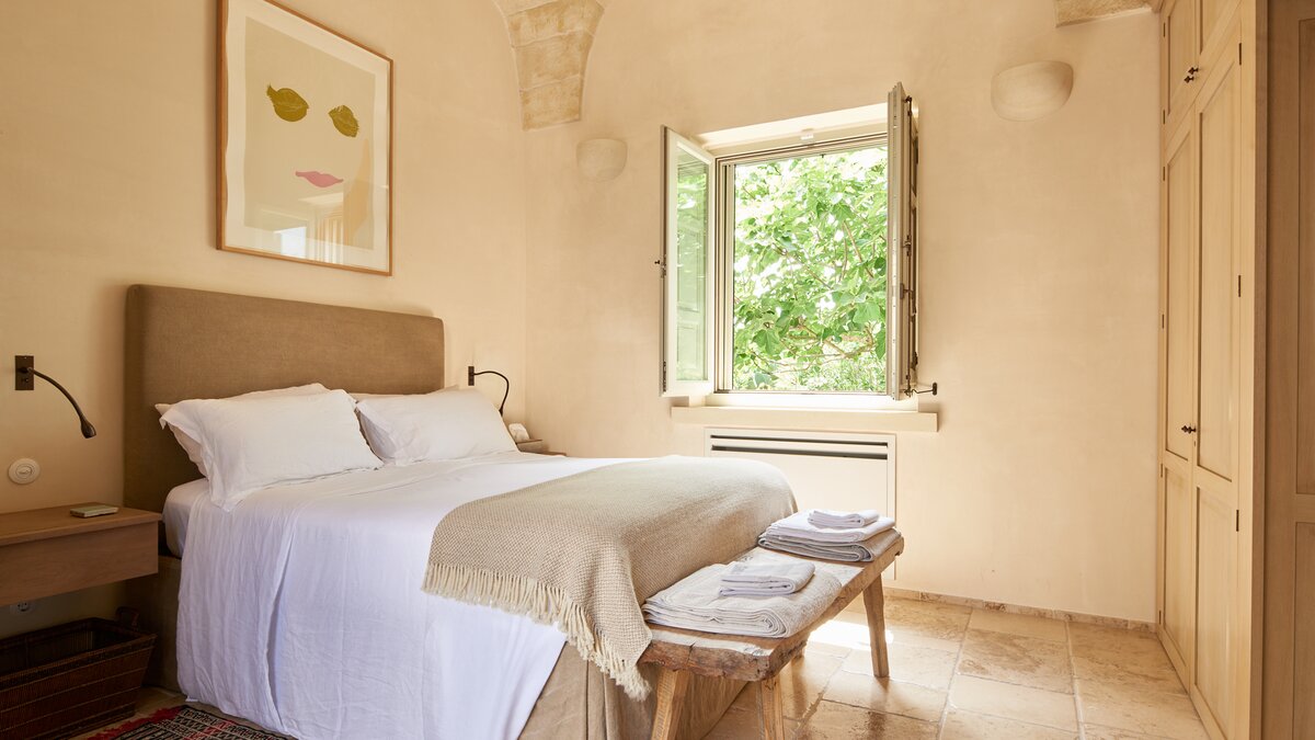 Die Masseria Coloniale erhebt sich aus grünen Gärten mit Rasenflächen, Sträuchern und Bergsteigern und bietet einen weiten Blick auf die umliegende Landschaft. Sie ist eine wunderschöne, blasse Steinvilla, deren Loggia-Bögen und der Brunnenhof die ganze Anmut der traditionellen apulischen Architektur widerspiegeln. Bewachsene Pergolen und Steinplattenböden die kühle Eleganz der Villa fortsetzen, wo das zurückhaltende Styling eine schöne Mischung aus modernen Möbeln in sanften Grau- und Cremetönen, rustikalen Chicstücken und mehr als ein Hauch von Romantik ist. Mit einem Kühlsystem und WLAN im gesamten Gebäude verfügt die einstöckige Villa über fünf übersichtliche Schlafzimmer, stilvolle Bad- / Duschräume, ein luftiges Wohnzimmer mit Türen zu zwei Seiten und eine charmante und gut ausgestattete Essküche. Eines Schlafzimmer befindet sich im Haupthaus und zwei in jedem der Schlafzimmerflügel. Im Freien gibt es eine Sommerküche mit Gasgrill und Holz-Pizzaofen, und es gibt einen überdachten Essbereich mit Blick auf die Rasenflächen am Pool, ein versenktes Trampolin und Tischtennis sowie und einen wunderschönen Pool, der 18 Meter lang ist.