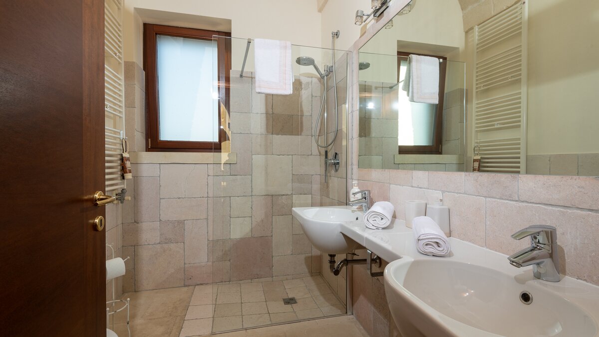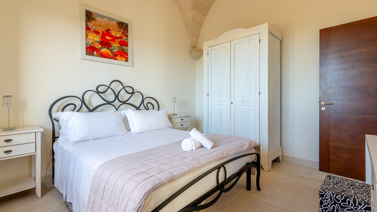 Mit Olivenhainen, soweit das Auge reicht, und einer Dachterrasse mit klarem Blick auf die albanischen Berge genießt die Masseria Violetta eine wirklich ruhige Lage. Geschäfte und Restaurants in Cannole sind nur 2 km entfernt und Martano und Otranto sind beide leicht zu erreichen. Der im Stil der Region aus hellem Stein erbaute „U“-förmige Haus steht in einem lockeren Innenhof mit Bogengängen, die zu den Zimmern führen, einer Steintreppe zum Dach und einem Springbrunnen, der sanft in der Sonne plätschert. Innerhalb der Villa krönen hohe Gewölbedecken stilvolle Zimmer in minimalistischem Monochrom, die mit Schmiedeeisen, Chrom und Glas eingerichtet sind und mit Klimaanlage, WLAN und modernen Geräten ausgestattet sind. Lichtdurchflutet von zwei Türen zur Terrasse und zu Obstbäumen, bildet der Sockel des „U“ eine offene Küche mit Frühstückstheke, einem sehr modernen Essbereich und einem eindrucksvollen Wohnzimmer. Es gibt zwei Doppelschlafzimmer in einem der Flügelund im anderen ein Zweibettzimmer und die Master-Suite, die sich zur Poolterrasse mit ihrem beeindruckenden Bad öffnet. Des Wohnzimmers im Freien konzentriert sich auf einen Pool mit Nachtbeleuchtung, der sich auf einer ummauerten und gepflasterten Terrasse befindet, mit einer Ess-Pergola, einem Grill, einem Kühlschrank und einem Bereich für die Zubereitung von Speisen.