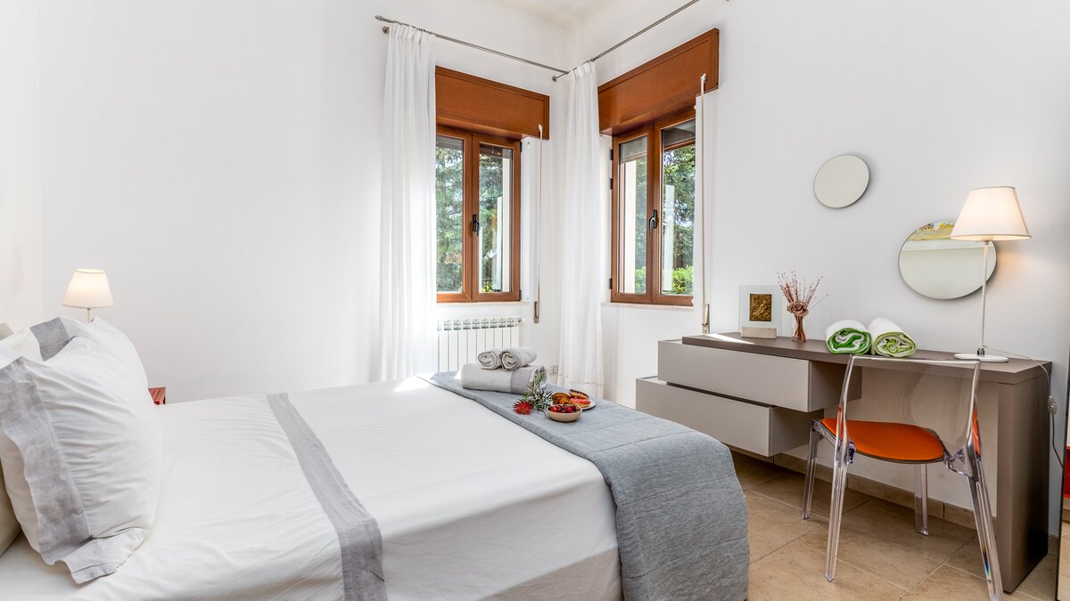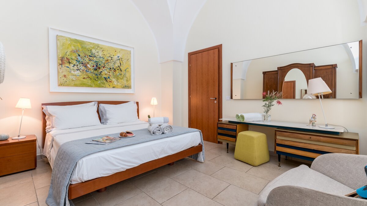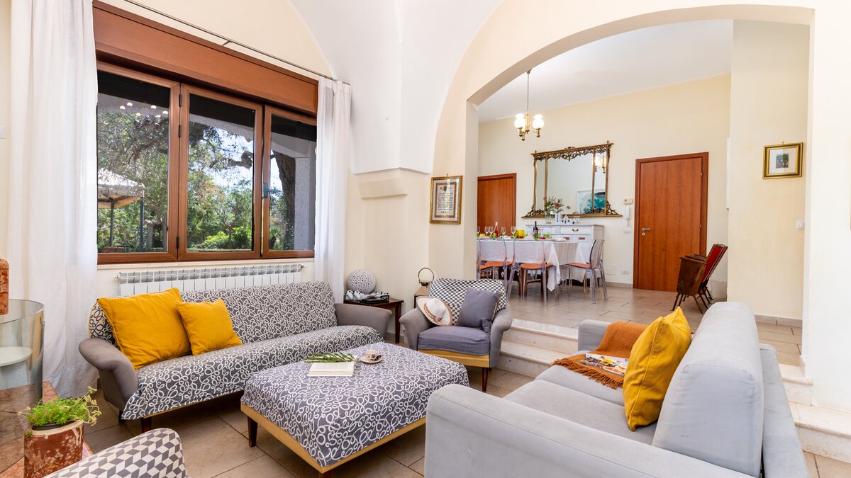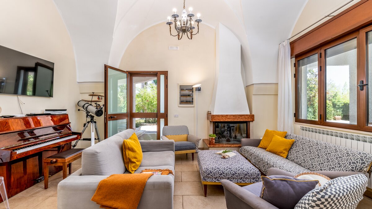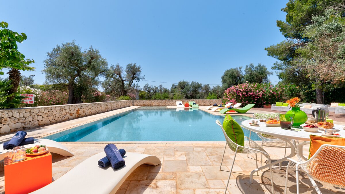Versteckt im Herzen eines alten Olivenhains und einer bewirtschafteten Farm von vier Hektar, ist diese große Villa eine gute Wahl für ein informelles Familientreffen. Mit sechs Schlafzimmern und mehreren Zustellbetten bietet die Villa Platz für bis zu siebzehn Erwachsene und Jugendliche. Im Erdgeschoss gibt es ein Ess- und Wohnzimmer auf Split Ebene, eine sehr gut ausgestattete Küche und zwei geräumige Doppelschlafzimmer, die sich ein Bad teilen. Zwei weitere Schlafzimmer und das Arbeitszimmer, die sich ein Duschbad teilen, liegen von einem angrenzenden Flur aus. Die Unterkunft im Erdgeschoss wird ergänzt durch eine fröhlich eingerichtete Suite im ersten Stock, die über eine Außentreppe erreichbar ist, eine neu renovierte Küche mit Zugang zu einer großen Terrasse, ein weiteres großes Schlafzimmer mit Doppelbett und ein Kinder- und Esszimmer, das sich ein Duschbad teilt. Des Erdgeschoss öffnet sich zu einer schattigen Terrasse mit reichlich Sitzgelegenheit und angrenzendem Esspavillon. Ein zweiter Essbereich im Freien befindet sich im Schatten von Bäumen am Pool, serviert von einem Grill und einem Pizza- und -ofen; und Obst und Gemüse, die auf dem Grundstück angebaut und angebaut werden, bieten die eigenen Zutaten für das Mittagessen. Unterhaltungsmöglichkeiten für jede Altersgruppe sind Tischtennis und Tischfußball, ein großzügiger Pool und Planschbecken, ein beleuchteter Tennisplatz (mit Basketballnetz), Go-Karts und Spielplatz für Kinder, Liegewiese mit Fußballtor und eine Auswahl an Fahrrädern. Denen Eigentümer betreiben auf ihrem Grundstück regenerative Landwirtschaft und ihr hochwertiges Olivenöl und eine Auswahl an Weinen können gekauft werden. Und mit zwei Stränden im Umkreis von 15 km liegt The Olive Grove nur 1,5 km von ausgezeichneten, preiswerten Restaurants und Annehmlichkeiten im malerischen San Vito dei Normanni entfernt. Nur 30 Minuten vom Flughafen Brindisi entfernt, ist dies eine ausgezeichnete Wahl für einen entspannten Familienurlaub mit viel Unterhaltung für alle Altersgruppen.