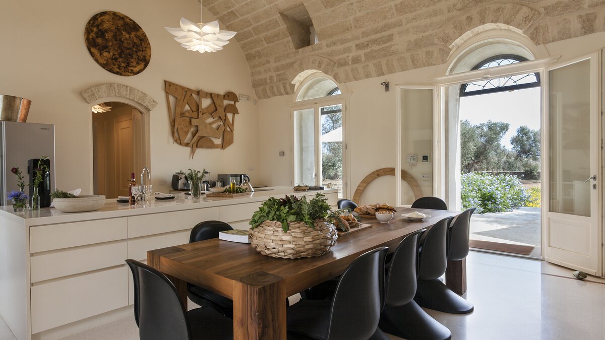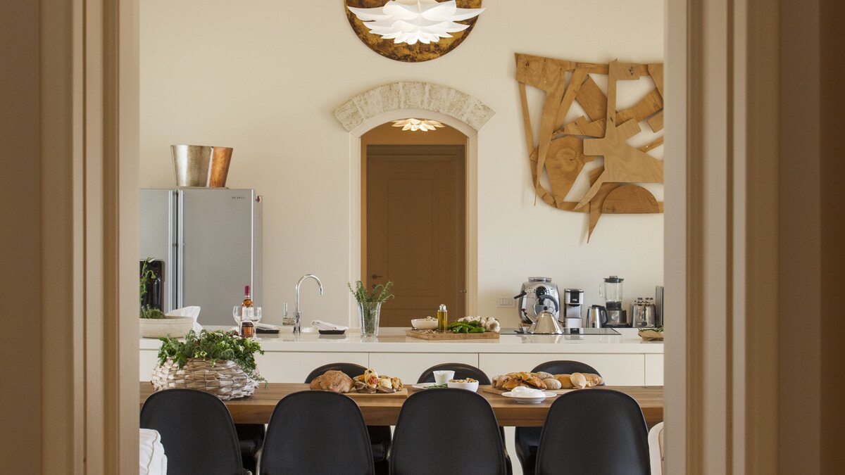 Diese herrliche, moderne Villa befindet sich inmitten von Olivenbäumen, Plumbago und anderen Sträuchern in Küstennähe, auf halbem Weg zwischen Otranto und Santa Maria di Leuca, nur 2,4 km von ausgezeichneten Restaurants, Annehmlichkeiten und Geschäften im malerischen Dorf Spongano entfernt. Dessen weiße Wände sind wunderschön im modernen, eleganten italienischen Stil eingerichtet und bilden eine leere Kulisse für interessante Kunstwerke und elegante Polstermöbel.