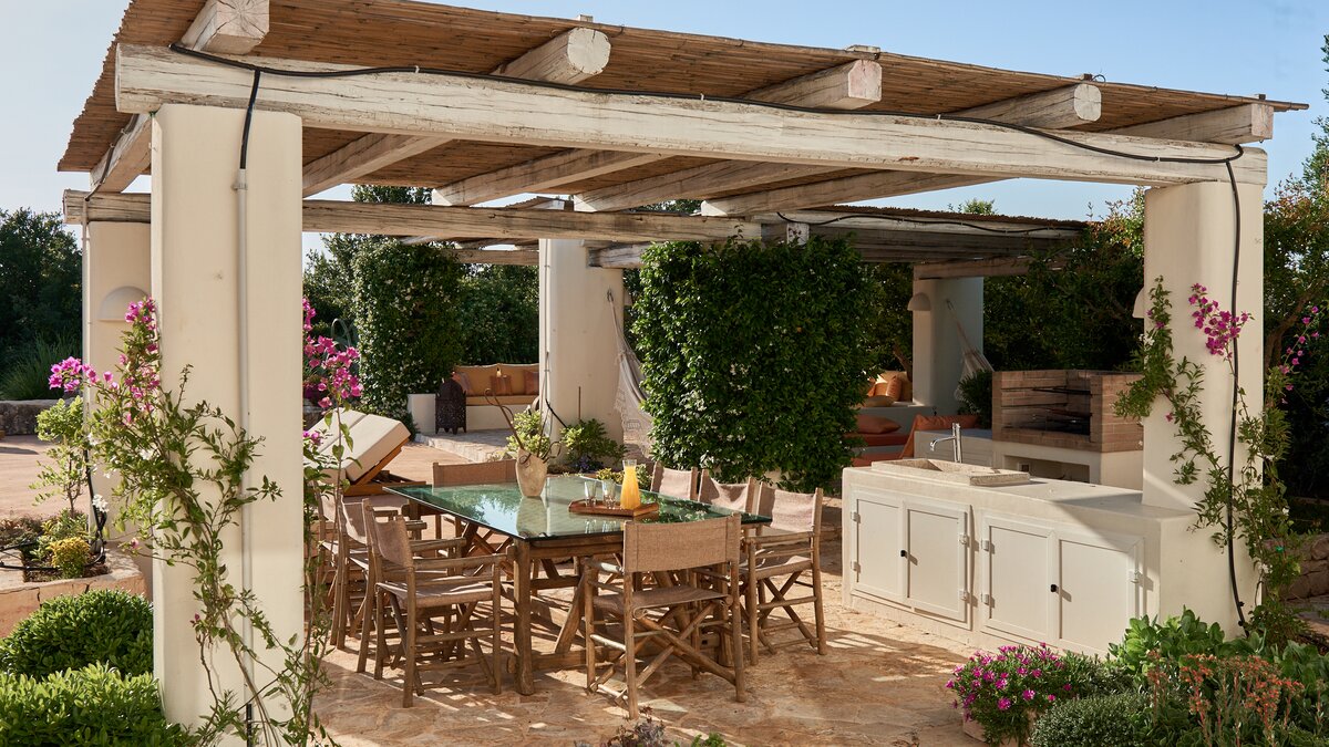 Umgeben von Wiesen und Olivenhainen, die alle den Privater Pool umgeben, verbindet diese Villa traditionelle apulische Steinarchitektur mit internationaler und moderner Inneneinrichtung. Im Außenbereich befindet sich der See-ähnliche Pool mit einem luxuriösen Loungebereich, Liegestühlen und Hängematten zum Entspannen und einem angrenzenden Essbereich im Freien, überdacht von einer Holzveranda mit eingebautem Grill. Deren moderne und einzigartige Inneneinrichtung der Villa Benedetta kontrastiert perfekt mit der Ruhe der ländlichen Umgebung. Deren offene Küche, der Ess- und Wohnbereich befinden sich unter einem traditionellen, für die Region typischen Tonnengewölbe und haben direkten Zugang zu den Außenbereichen. Alle drei Schlafzimmer verfügen über eine interessante Mischung aus traditionellem und modernem Stil mit indischen Stoffen und italienischen Kunstwerken. Denen beiden Schlafzimmer haben Zugang zum Poolbereich, eines davon mit eigenem Duschbad und das andere teilt sich ein Bad mit einem klassischen römischen Steinbadezimmer mit dem Zweibett-Schlafzimmer. Dieses Anwesen ist sehr privat, aber dennoch leicht erreichbar, nur 7 km von Supermärkten, Geschäften und ausgezeichneten Restaurants in Cisternino und Ostuni entfernt.