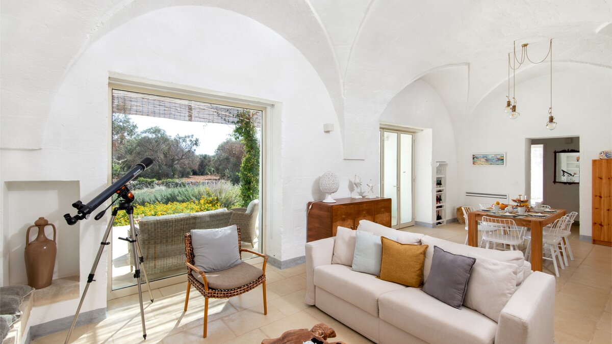Über den Hängen oberhalb der breiten Sandstrände im Süden Apuliens liegen kleine Dörfer, in denen die Zeit nicht stehen geblieben ist, sondern in einem etwas gemächlicheren Tempo zu laufen scheint. Dies ist die Kulisse für diese wunderschöne neue Villa, die zwischen dem Küstenort Torre Vado und dem Dorf Morciano im Landesinneren liegt und mit modernen Einrichtungen wie Klimaanlage gebaut wurde. Innerhalb der Villa befindet sich die gut ausgestattete Küche mit hübschen Fliesen, die offen zu einem komfortablen und charaktervollen Wohn- / Esszimmer mit schönen Gewölbedecken führt. Der Zugang zum geräumigen Hauptschlafzimmer mit Doppelbett ist von einer Seite des Wohnzimmers aus. Die anderen beiden geräumigen Schlafzimmer sind von der gegenüberliegenden Seite in der Nähe des Speisesaals zugänglich. Allen haben französische Fenster, die sich zum Garten hin öffnen. Denen jungen Eigentümer haben große Sorgfalt darauf geachtet, ihre Villa mit interessanten Holzstücken und schönen dekorativen Keramiken zu dekorieren, die für die Gegend typisch sind. Draußen ist eine Terrasse mit weichen Sitzgelegenheiten ausgestattet und die Küche öffnet sich auf eine weitere Terrasse, auf der man unter einer Pergola im Freien speisen kann. Der neue Infinity-Pool (Fertigstellung im Januar 2020) wurde in den sonnigen Gärten versenkt und es gibt auch eine charakteristische „Pajara“, eine kreisförmige Steinstruktur in den Gärten, die typisch für die Gegend ist. Energiegeladene Gäste können nach Torre Vado spazieren (auf dem Rückweg bergauf!) und die Hügel sind übersät mit den charakteristischen runden Pajara-Strukturen, Dörfern und einer atemberaubenden Aussicht. Es gibt viele preiswerte Restaurants vor Ort und Geschäfte in den Dörfern Morciano oder Torre Vado. Eines Ansammlung von Küstendörfern, Strände mit ausgezeichneten lebhaften Strandclubs, ideal für einen Drink bei Sonnenuntergang und Abendessen und Buchten sind nur eine kurze Autofahrt entfernt. Vom Hafen von Torre Vado aus können Bootsausflüge unternommen werden. Für Tagesausflüge empfehlen wir einen Besuch nach Gallipoli, Otranto und Lecce. Dieses wunderschöne neue Anwesen ist eine ausgezeichnete Wahl für einen entspannten Urlaub in einer authentischen Umgebung.