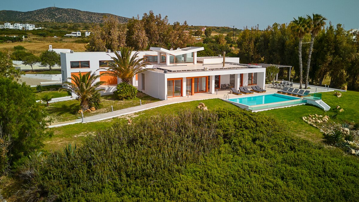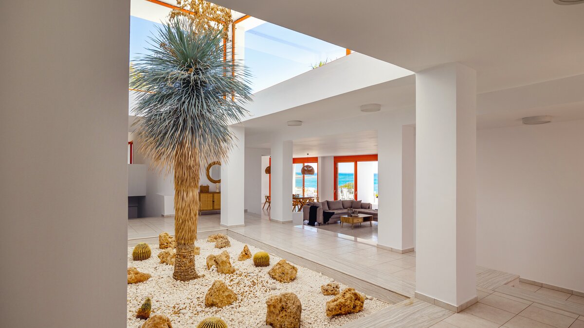 Im Außenbereich befindet sich ein großer PRIVATER POOL, der den Mittelpunkt der Terrasse bildet. Der weitläufige Außenbereich ist ideal für große Gruppen und Großfamilien, um lange, gemütliche Mittagessen zu genießen. Nur wenige Schritte entfernt befindet sich ein Privatstrand mit goldenem Sand und kristallklarem Wasser, der für einen wirklich ruhigen Inselurlaub sorgt.