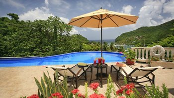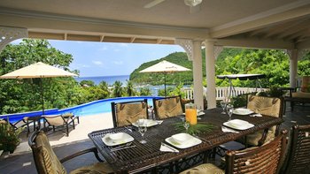 Outside there is a spacious terrace equipped for al fresco dining and a gorgeous free-form infinity pool, which looks out to the cobalt blue Caribbean sea. Nearby amenities can be found in Marigot Bay 0.3km away