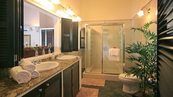 With wondrous views out to sea and across the lush green landscape of St Lucia, Villa Ashiana is a spacious property for large groups of friends or two families holidaying together. The light and airy ground floor is entirely open plan, featuring a living, dining and kitchen area. Upstairs there are five lovely bedrooms; two twin rooms with a shared shower room, two en suite double rooms and a master double bedroom with en suite shower room and a lovely balcony with sea views.