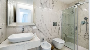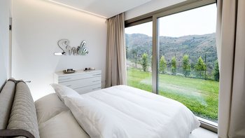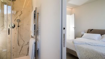 Es gibt insgesamt sieben Doppelschlafzimmer, die alle mit eigenem Bad ausgestattet sind. Dies ist ein ideales Haus für Gruppen von Freunden, die zusammen Urlaub machen. Drei Schlafzimmer befinden sich im Erdgeschoss, zwei im ersten Stock und zwei im zweiten Stock.