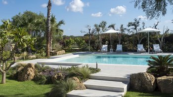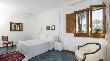 Dieses schöne und ungewöhnliche Anwesen aus den 1970er Jahren befindet sich in wunderschön gepflegten Rasengärten von etwa 3⁄4 Hektar, in einer ruhigen, unauffälligen Lage in der Nähe von Trapani, einer historischen Stadt am westlichsten Punkt Siziliens. Von den Gärten und dem schönen großen Pool bietet sich ein außergewöhnlicher Panoramablick über das Land, das an die Villa angrenzt, bis zum Meer über die angrenzenden Ägadischen Inseln. Deren Villa verfügt über zahlreiche Bereiche, in denen sich die Gäste am Pool entspannen können, und eine schattige Terrasse und die Gärten mit bequemen weichen Sitzgelegenheiten und einem schattigen Ess- und. Für die umfangreichen und kürzlich renovierten Innenräume haben sich die Eigentümer entschieden, die Tradition der sizilianischen Keramik zu präsentieren, und es gibt auch einige sizilianische Fliesen und ungewöhnliche Vintage-Stücke kombiniert mit moderner Beleuchtung, Betten und Möbeln. Deren Villa verfügt über zwei sehr geräumige Doppelschlafzimmer, jedes mit viel Platz für ein Babybett. Drei weitere Doppelschlafzimmer befinden sich hintereinander in einer anderen Ecke der Villa. Aller Zimmer haben ein eigenes Bad oder ein eigenes Bad.