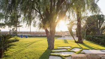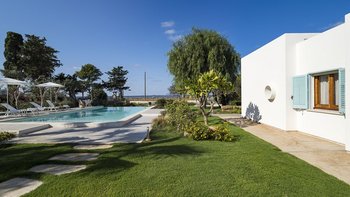 Inmitten üppiger Rasengärten erwartet Sie die komfortable Familienvilla Villa del Sale mit Blick auf den Sonnenuntergang in der Nähe von historischen Städten, Stränden, Geschäften und Restaurants.