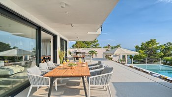 Eingebettet in den Hang über dem Jakirusa Strand, ist die Villa Kalina ein erstaunliches modernes Anwesen, das perfekt für große Gruppen von Freunden ist, die zusammen Urlaub machen.