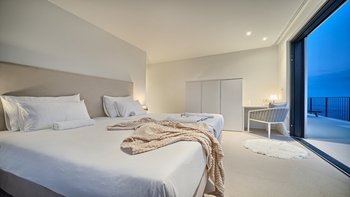 Die Unterkunft Split befindet sich auf vier Etagen, was auch für große Gruppen ideal ist, um ihren eigenen Raum zu genießen. Im Erdgeschoss befindet sich ein modernes Wohnzimmer, das durch Glasschiebetüren auf die Terrasse hinausgeht und mit zwei nebeneinander liegenden Esstischen im Freien ausgestattet ist. Deren erste und dritte Etage sind den Schlafbereichen gewidmet – alle Schlafzimmer sind Doppelschlafzimmer mit eigenem Bad oder Dusche. Im zweiten Stock befindet sich ein Wellnessbereich mit Sauna, Jacuzzi und einem voll ausgestatteten Fitnessraum. Zu den weiteren Unterhaltungsmöglichkeiten im Innenbereich gehört ein Spielzimmer mit Tischfußball.