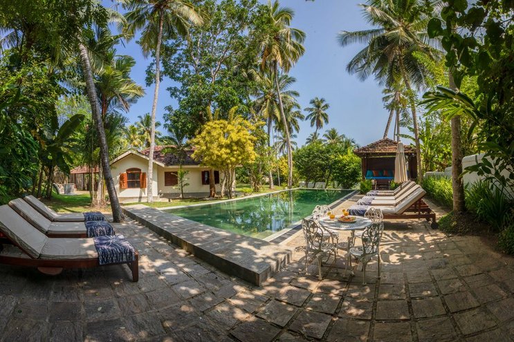 Kingfisher ist eine private Villa mit vier Schlafzimmern in Gehweite zum Strand in der Nähe von Weligama, umgeben von üppigem Grün.