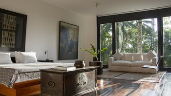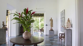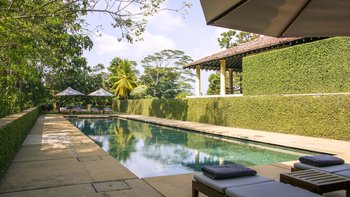 Allamanda ist ein perfekt abgeschiedener ländlicher Rückzugsort auf einem 20 Hektar großen Grundstück mit einer unglaublichen Aussicht über die Landschaft Sri Lankas; Adams Peak im Norden und den Fluss Gin im Süden. Mit über 200 Jahren Architekturgeschichte ist es keine Überraschung, dass dieses Anwesen ziemlich berühmt ist – entwickelt vom renommierten Architekten Kerry Hill in den letzten 30 Jahren – sein Design ist einfach atemberaubend und wirklich einzigartig. Dessen Haus erstreckt sich über drei geräumige, freistehende Gebäude, die sich um das ursprüngliche Plantagenhaus aus dem Jahr 1820 herum befinden. Aufgrund der Unterbringung, die sich über mehrere Gebäude split erstreckt, ist es keine Unterkunft, die wir für Partys mit kleinen Kindern empfehlen. Es gibt fünf beeindruckende Schlafzimmer, alle mit eigenem Bad und einer Mischung aus Berg- und Dschungelblick, einer Reihe von großen Wohnbereichen und einem wunderbaren Esspavillon mit Platz für 20 Gäste, so dass es perfekt für Unterhaltung ist. Der riesige 19 m lange Pool ist ein weiteres Highlight im Freien, während die Küche ist, in der die fabelhafte Köchin allen unseren Gästen köstliche Mahlzeiten zubereitet. Während sich das Haus absolut privat und abseits von allem anfühlt, liegt das zum UNESCO-Weltkulturerbe gehörende Galle Fort nur 7,5 km entfernt und bietet ausgezeichnete Einkaufsmöglichkeiten und Restaurants sowie die atemberaubenden weißen Sandstrände der Südküste sind nur eine kurze Autofahrt entfernt.