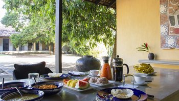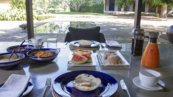 Ein Cash Float-System wird betrieben, um alle Ausgaben für Essen und nicht-alkoholische Getränke zu decken und der Koch wird dieses Geld verwenden, um nur die Zutaten für die Zubereitung Ihrer Getränke und Mahlzeiten sowie den Transport zu kaufen. Er wird einen Float benötigen und um eine Aufladung bitten, wenn diese abläuft. Er wird Ihnen Quittungen und Restbetrag usw. zur Verfügung stellen. Deren Küche ist für ein Privathaus konzipiert und daher werden die Gäste gebeten, nur ein Gericht/Mahlzeit pro Gruppe auszuwählen. Sri Lankisches Frühstück wird dringend empfohlen und beachten Sie, dass es 24 Stunden im Voraus zu machen ist. Obwohl der Koch weiß, wie man die besten Produkte beschafft und die besten Preise erzielt, wird den Gästen empfohlen, ihn auf mindestens einer Einkaufstour zu begleiten, damit Sie sich mit dem Angebot und den lokalen Kosten vertraut machen können. Es kann auch Spaß machen. Den Gästen wird auch empfohlen, Sam über Allergien oder besondere Ernährungsbedürfnisse zu informieren. Ein Menü ist auf Anfrage erhältlich.