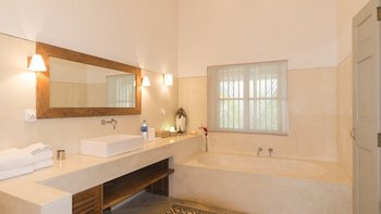Die Lage der Villa Ruby ist wunderbar, direkt am Wasser mit weitreichendem Meerblick und direktem Zugang zum Strand. Das Innere der Villa ist modern und minimal, mit hohen Gewölbedecken, auffälligen Kunstwerken und schönen Farrow & Ball grünen Fensterläden, die die Natur willkommen heißen. Es gibt einen großen offenen Grundriss mit bequemen Sitzgelegenheiten und Billardtisch. Treten Sie hinaus auf die geräumige Terrasse, die sich perfekt zum Essen im Freien eignet – der Küchenchef der Villa ist ausgezeichnet und kann eine Reihe westlicher und sri-lankanischer Küche zubereiten, so dass die Gäste sich zurücklehnen und entspannen können.