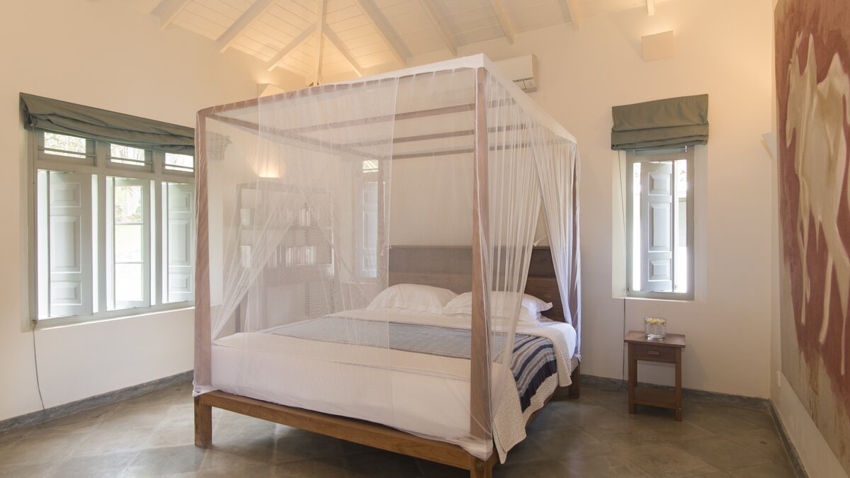 Es gibt vier Schlafzimmer im Haupthaus, einschließlich der Master-Suite mit einem Kingsize-Himmelbett und einem eleganten, geräumigen Bad. Drei weitere Schlafzimmer – bestehend aus einem Doppelbett. Ein- Zweibett- und ein Doppelstockzimmer sind ebenfalls alle en suite und befinden sich im Innenhof des Hauptgebäudes. Dessen fünfte Schlafzimmer ist die Gartensuite nur wenige Meter vom Haupthaus entfernt und kann als Zweibett- oder Doppelbett eingerichtet werden.
