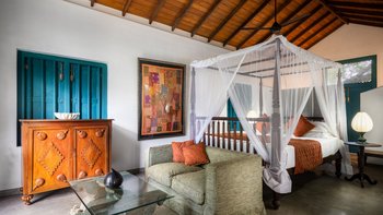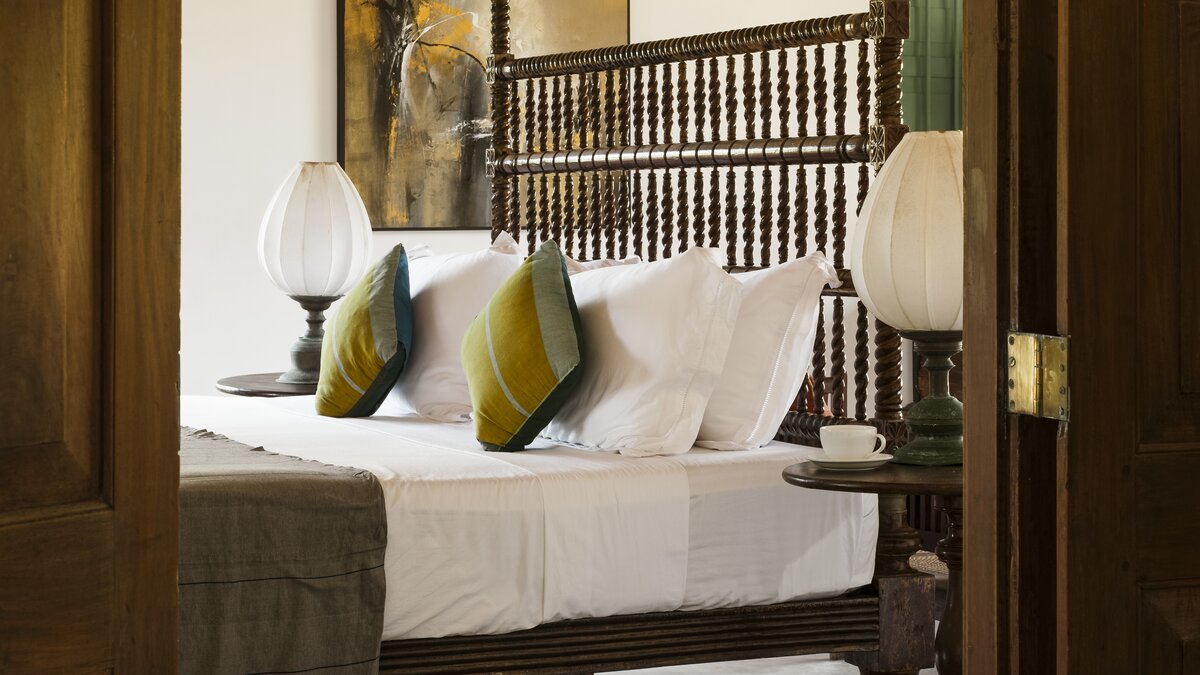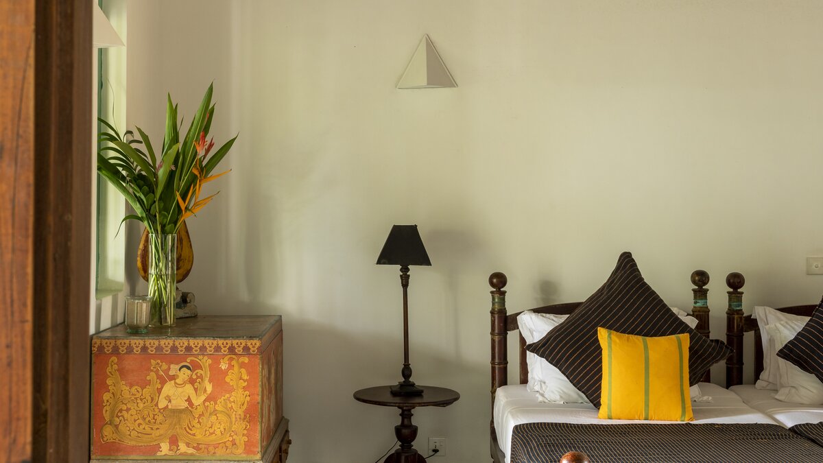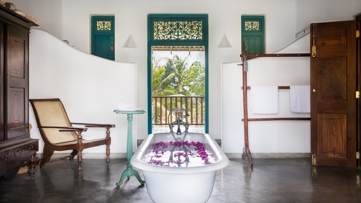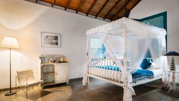 Das letzte Projekt des sri-lankischen Architekten Geoffrey Bawa, The Last House, ist eine bemerkenswerte Strandvilla an der Küste von Tangalle. Im Inneren des Anwesens bilden die Zimmer die perfekte Kulisse für eine Reihe von antiken und modernen Möbeln, Kunst und Stoffen. Deren Villa verfügt über fünf sehr komfortable und geräumige Schlafzimmer. 'Na’ ist ein großes Schlafzimmer mit Doppelbett im Erdgeschoss mit Blick auf eine kleine Lagune und Blick auf den Strand, komplett mit eigenem Bad. 'Atteriya’ ist ein Doppelzimmer mit außergewöhnlichem Meerblick, eigenem Bad und direktem Zugang zum vorderen und hinteren Garten. Deren dritte Zimmer im Erdgeschoss ist 'Moonamal’, mit herrlichem Meerblick, Zugang zum Garten und Bad. Gehen Sie nach oben, um die 'Cinnamon Hill’ Zimmer mit eigenem Bad zu entdecken. Das Zweibettzimmer ist groß und geräumig, mit Blick auf das Meer und den Garten, mit einer gusseisernen Badewanne und zwei Waschtischen. Des Doppelzimmer bietet eine ähnliche Aussicht, eine gusseiserne Badewanne und einen Balkon mit Blick auf den Strand, der auf Anfrage gut für private Mahlzeiten geeignet ist. Privat Mahlzeiten können auch auf der Veranda oder am Strand für einen romantischen Abend arrangiert werden.