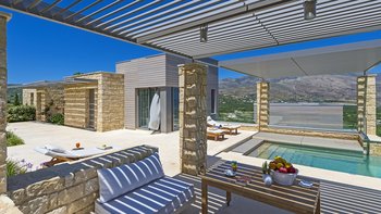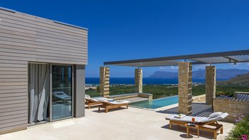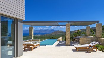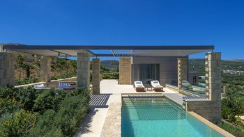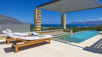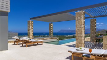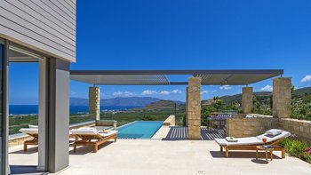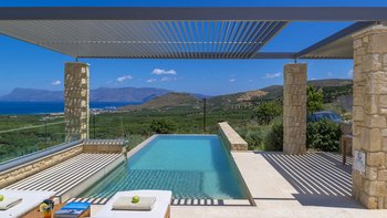 Ein ruhiger Rückzugsort in Hanglage mit atemberaubendem Meerblick, mühelosem Zugang, modernem Stil und einem privaten Infinity-Pool für die ultimative kretische Flucht.