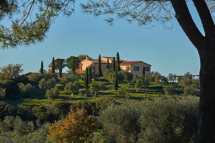 Umgeben von Eichenwäldern, Weinbergen und Olivenhainen ist die Podere Sicelle eine außergewöhnliche Villa mit sechs Schlafzimmern und einem atemberaubenden Blick auf die Naturlandschaft der Toskana.