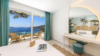 Die Villa Bella Mare liegt am Ende der Straße in einem Gebiet von üppigem Grünes und ist ein wunderschönes, ruhiges und privates Anwesen. Dieser Neubau ist unglaublich modern und geräumig, mit einem hellen und luftigen Gefühl. Dessen Villa blickt auf das Meer und bietet einen außergewöhnlichen Panoramablick, den man am besten vom Privater Pool aus bewundern kann. Im Inneren finden die Gäste eine große, offene Küche, einen Wohn- und Essbereich. Jedes Zimmer ist frisch und weiß, mit fröhlichen Blau- und Grüntönen. Im Erdgeschoss befindet sich auch ein Schlafzimmer mit Doppelbett und Dusche en suite. Gehen Sie nach oben, um das exquisite Hauptschlafzimmer zu entdecken, das mit einem schönen großen Bett und einer freistehenden Badewanne ausgestattet ist. Dieses Zimmer verfügt über ein eigenes Bad und Zugang zu einem eigenen Balkon mit Meerblick. Auf dieser Etage befinden sich auch ein Schlafzimmer mit Doppelbett und ein Zweibettzimmer, die jeweils mit einem eigenen Bad mit Dusche und Zugang zu einem eigenen Balkon ausgestattet sind. Dessen Villa ist ideal für Familien und umfasst auch ein Spielezimmer mit einem Smart-TV und einem Billardtisch.