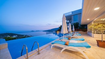 Mit herrlichem Blick von der schönen Poolterrasse über Kalkan und den nahe gelegenen Inseln, ist dies eine luxuriöse, moderne Villa, die Stil und Qualität ausstrahlt.