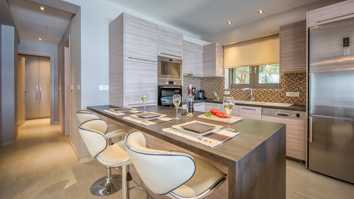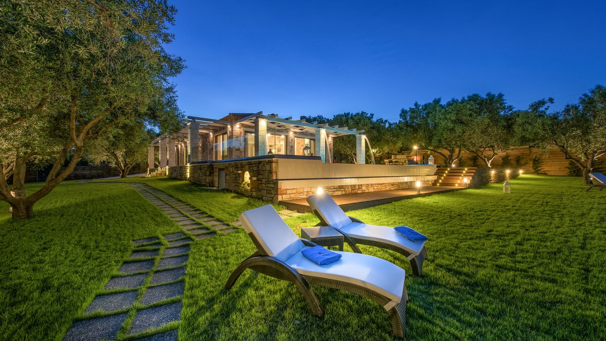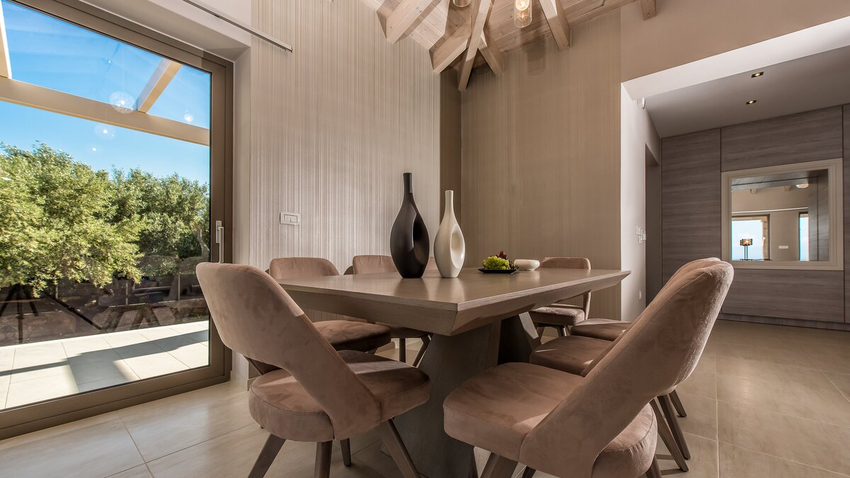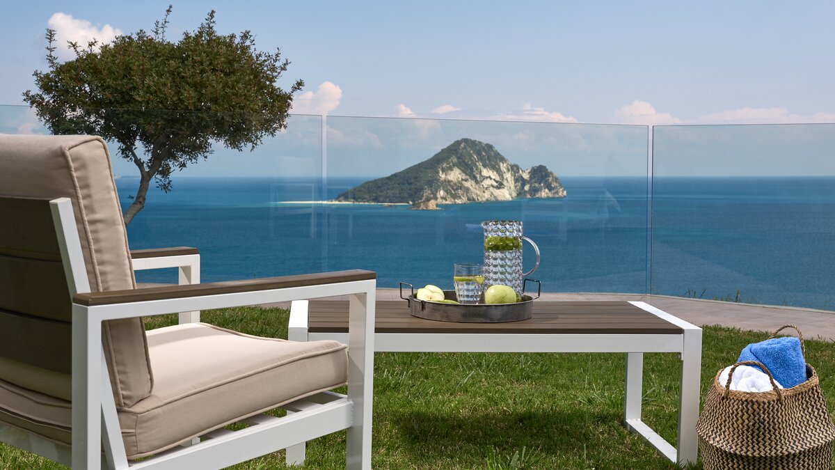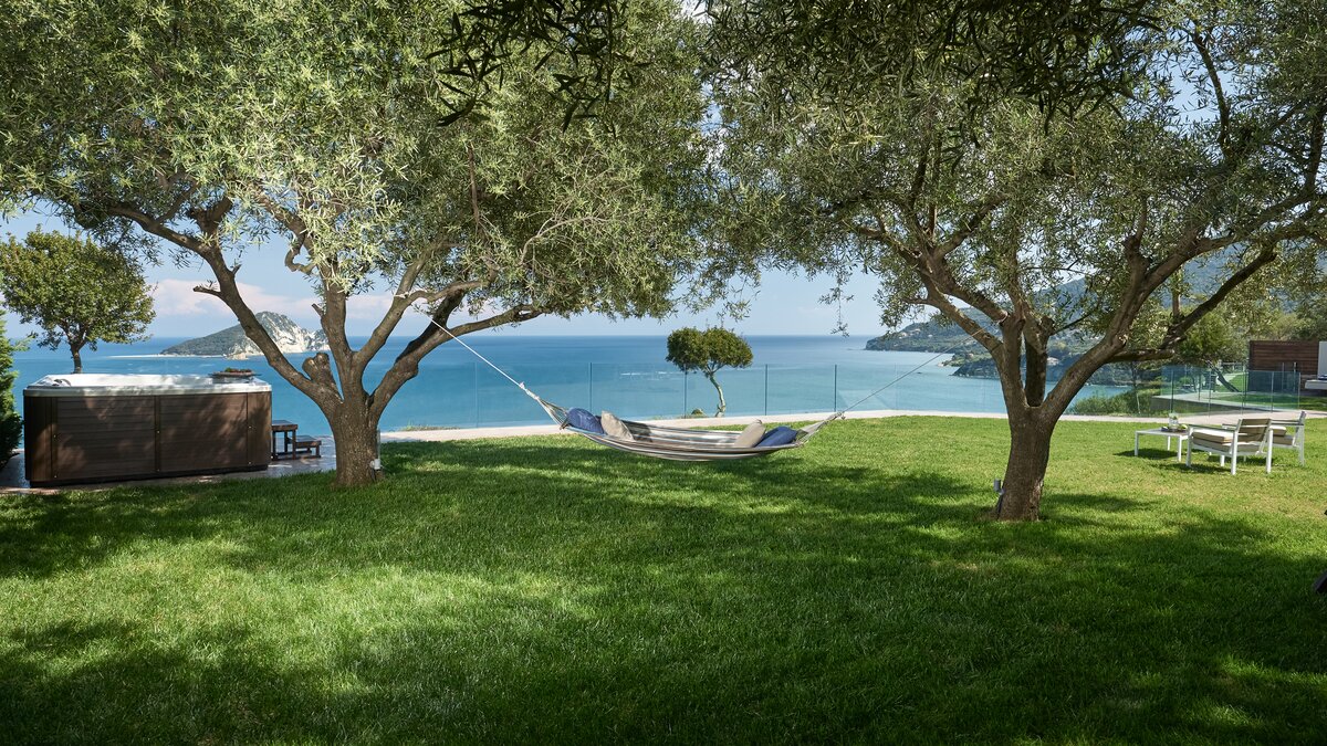 Diese elegante, aus Stein erbaute Poolvilla ist eine der neuesten Ergänzungen an der herrlichen Südwestküste von Zakynthos. Die Villa liegt privat auf einem Hügel oberhalb des Dorfes Limni Keri und bietet einen herrlichen Blick auf das Meer bis zur Schildkröteninsel von Marathonisi. Obwohl das Haus charmant modern ist, wurde es so gestaltet, dass es den klassischen zakynthischen Inselstil beibehalten hat. Es gibt ein unglaublich einladendes natürliches Design im Inneren – angefangen bei der großen, offenen Lounge mit riesigen Schiebetüren, die das Beste aus der idyllischen Meereskulisse machen. Abgesehen von den gelegentlichen Farbtupfern trägt die Villa einen wunderbar neutralen Stil im gesamten Erdgeschoss. Es gibt einen Esstisch, einen großen Steinkamin und einen modernen Küchenbereich mit Barhockern und allem notwendigen Komfort. Denen gefliesten Bäder sind modern und jedes der drei Schlafzimmer wurde einfach gestaltet, mit einem großen Doppelbett als herausragendes Herzstück. Zwei Schlafzimmer bieten auch den zusätzlichen Genuss eines eigenen Bades. Treten Sie nach draußen und es gibt einen wunderbar angelegten Garten, um Sie zu begrüßen. Freuen Sie sich auf Hängematten, Liegestühle, sonnendurchflutete Poolterrassen und einen eingebauten Grill – und einen atemberaubenden Pool, von dem Sie einige der fantastischsten Ausblicke auf das Ionische Meer genießen können. Wenn Sie Lust haben, in den Tag zu gehen, ist das Limni Keri Beach nur fünf Minuten von der Villa entfernt, oder es ist eine 13 km lange Fahrt zum wunderschönen goldenen Sandstrand von Kalamaki Beach.