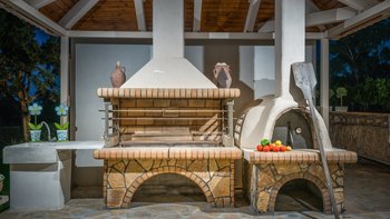 Es gibt nicht viel mehr als den Luxus eines kleinen Sandstrandes direkt vor der Haustür. Dieser schöne Privatvilla in der Nähe des Dorfes Lithakia ist ein absoluter Genuss – gehen Sie über den kleinen Privatweg am Ende des Gartens und schlagen Sie einfach auf den weichen Sand auf, der die Aussicht auf Ihre Villa umgibt. Der Außenbereich der Villa Raphaela ist unglaublich großzügig. Es gibt große Rasengärten für Spiele und einen großzügigen privaten Pool mit Liegestühlen und Brollies auf der gepflasterten Terrasse rundherum. Ein schattiger Sitzbereich mit Blick auf den herrlichen Meerblick ist ein fantastischer Ort für eine faule Siesta oder Entspannung vor oder nach dem Abendessen – und es gibt einen überdachten Esstisch mit einem Grill und einem Pizzaofen im Freien, so dass Sie wirklich in die Stadt gehen können, um eine Villa im Freien zu essen.