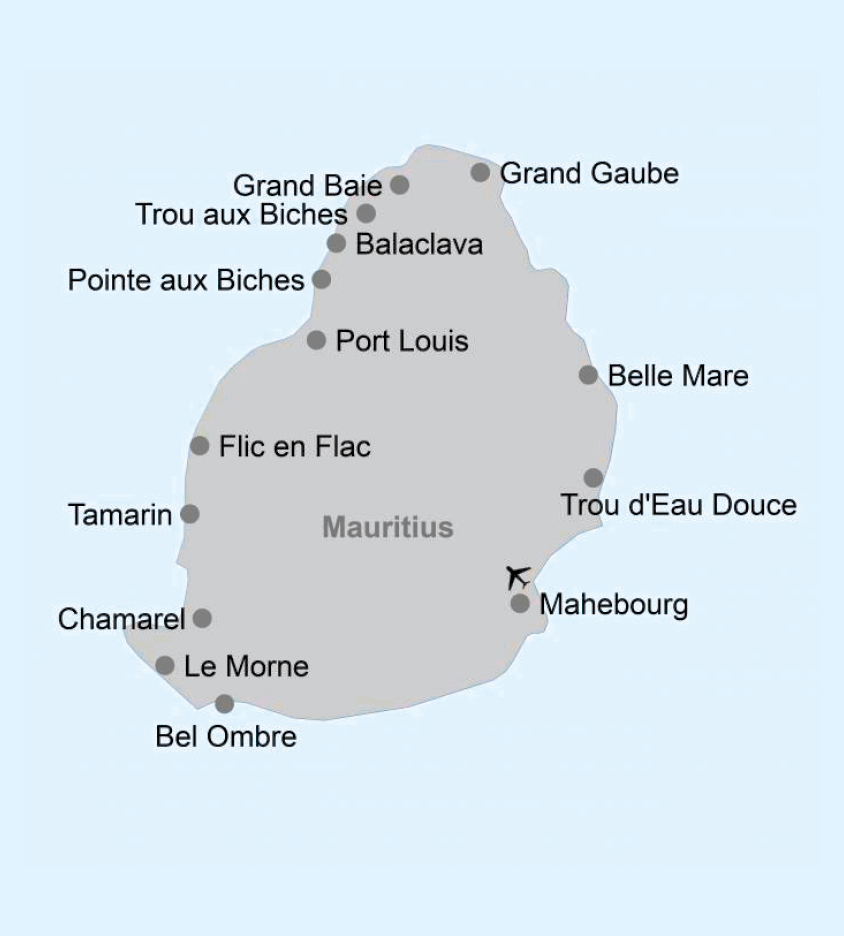 • Der Osten (Belle Mare & Île aux Cerfs) – Unberührte Strände, türkisfarbenes Wasser und ruhige Lagunen prägen diese Region. Die Île aux Cerfs ist ein absolutes Highlight für Wassersportfans.