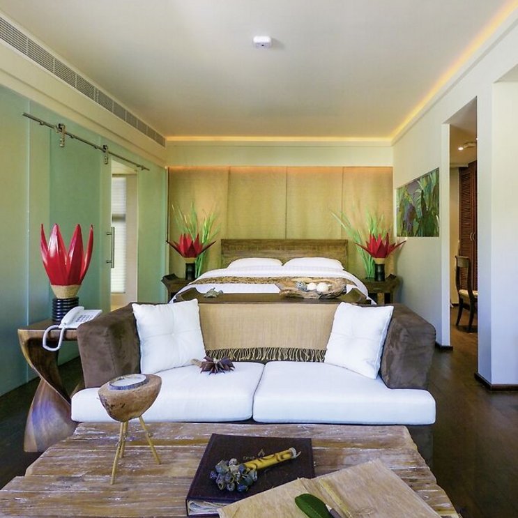 - 46-50 qm, Suite, Poolblick, Dusche, Badewanne, Bademantel, Badeslipper, Klimaanlage, Ventilator, Minibar kostenpflichtig, Safe, Bügeleisen, TV, Espressomaschine, Kaffee/Tee, Balkon oder Terrasse, bei Ankunft im Zimmer Obst