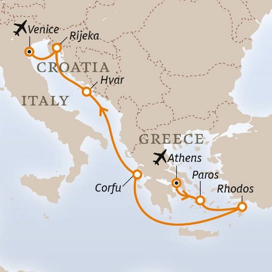 Am Vormittag Direktflug mit Swiss (durchgeführt von Edelweiss Air) von Zürich nach Athen. Anschliessend Transfer nach Piräus und Einschiffung auf die EXPLORA II. Machen Sie sich mit dem Schiff vertraut.