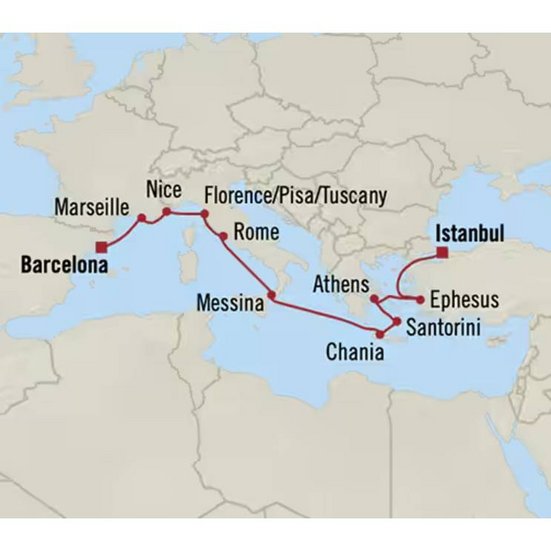 Erklimmen Sie die prächtige Akropolis und staunen Sie über den Parthenon, die wunderschönen Tempel und den Blick über das sich vor Ihnen erstreckende Athen. Besichtigen Sie die Höhepunkte der Stadt, einschliesslich der neuen und alten Olympiastadien. Unternehmen Sie einen Ausflug zum Kap Sounion und dem Tempel des Poseidon mit Blick aufs Meer oder besuchen Sie das antike Korinth und den schmalen Korinthkanal, der durch mehrere Kilometer festen Fels geschnitten wurde.
