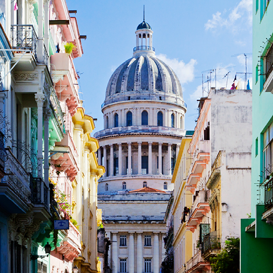 In Havannas Altstadt zwischen Oldtimern und Musik durch bröckelnde Gassen vergangene Zeiten erspüren.
