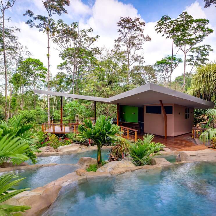 Das Chachagua Rainforest Hotel & Hot Springs liegt abgeschieden zwischen dem Arenal-Nationalpark und dem Children’s Eternal Rainforest. Die Unterkunft bietet ein authentisches Regenwalderlebnis mit hohem Komfort: Sie entspannen in natürlichen Warmwasserbecken, lauschen den Geräuschen des Dschungels und entdecken auf privaten Wanderwegen Wasserfälle und exotische Tiere. Besonders eindrucksvoll sind die Jungle Tree Houses, die hoch über dem Waldboden thronen und eine spektakuläre Aussicht auf die Baumkronen bieten.