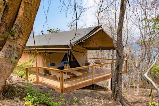 InfrastrukturHochwertige Safarizelte, verteilt am Hügel. Die Zelte sind komfortabel ausgestattet und verfügen über eine Terrasse, ein King-Size-Bett, ein kleines Schlafsofa sowie Deckenventilator, Minibar und Safe. 2 Restaurants und ein kleiner Pool vervollständigen die Infrastruktur.